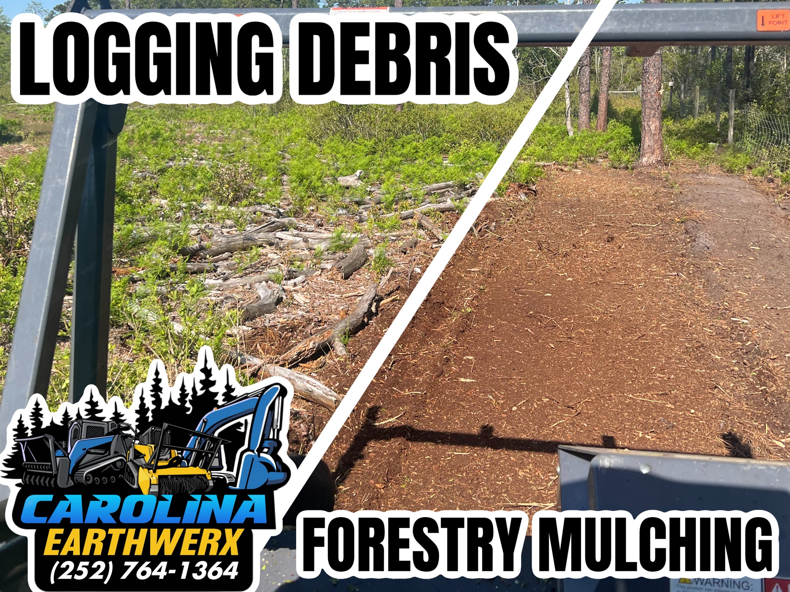 Carolina EarthWerx Forestry Mulching services are a great way to clean up overgrown land! Forestry Mulching cuts all underbrush, overgrowth, and trees in the 6-8” diameter range. Forestry Mulching is a quick, cost effective way to clear land, cut fence lines back, or selective thin your forests.